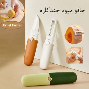 ین وسیله از یک پوستکن و یک چاقو تشکیل شده است. از قسمت پوستکن برای پوستگیری پوستهها و سبزیجات استفاده کنید. از سمت چاقو برای برش و برش استفاده کنید که با پوست کندن و جدا کردن چندین سبزی و میوه از جمله سیب زمینی، سیب، گلابی، هویج، خیار، انبه، کیوی، پرتقال و غیره بسیار کار می کند.